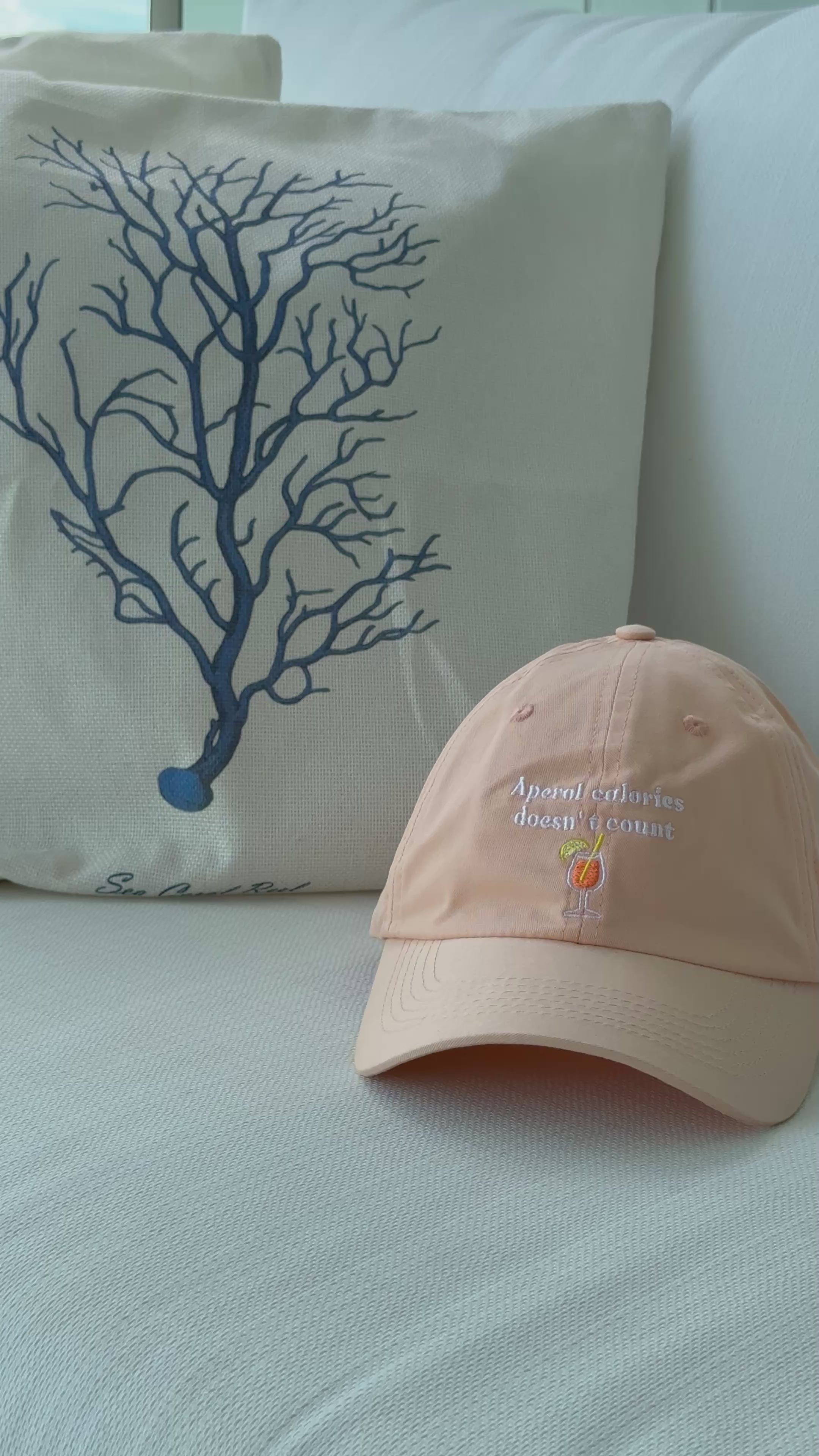 Boné Aperol calories doesn’t count na cor pêssego com regulador atrás.